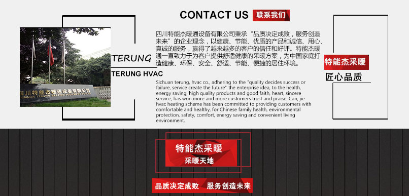 四川特能杰暖通是一家地暖生产厂家,专注从事采暖的公司,公司专业精做地暖暖气产品,有众多采暖产品可供客户了解选择如石墨烯类碳纤维电热膜采暖、发热线地暖、发热地板、传统水地暖及暖气片采暖等等,公司也是电地暖生产厂家,公司有专门的工程项目部门及家用采暖项目部门,有众多工程采暖项目,四川地区家用采暖及工程采暖都支持施工售后一体服务。公司不仅从事家用工程商用等地暖安装,还研发电地暖,是电地暖生产厂家;不论您是需要采暖项目安装,工程类项目、家庭采暖还是批发拿货都可以联系我们哦!24小时服务热线:4000-333-856,18615713880。