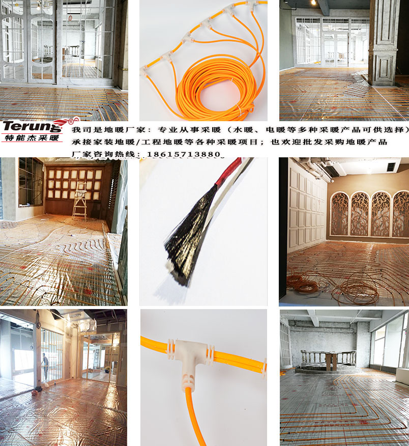 这里特能杰专业采暖小编给大家先简单介绍下该项目选用的产品:碳纤维长丝发热电缆。碳纤维发热电缆是根据其碳材料的固有特征,又兼具有纺织材料的多孔及任性、多面性,经两端加压导电,使电能迅速转化为热能,通过远红外线辐射散发热量,达到取暖效果,这就是碳纤维电地暖的工作原理;碳纤维发热电缆线与普通发热电缆有本质的区别,普通发热线是依靠电阻丝而发热,碳纤维发热电缆是碳纤维以传导的方式传导热量,且释放远红外有保健作用。碳纤维长丝发热电缆地暖保健作用是因为该地暖系统75%以上的热能以远红外方式、且波长为7-14um、当两段波长相等相互作用时就会产生共振现象,而人体是生物体,人体70%-80%以上是由水分子组成,在共振作用下,首先激活了水分子的振动,而产生一系列生理上的反应,可促进人体皮肤和皮下组织中的细胞温度上升,使人体由内至外产生热传递,促进和改善了人体的血液循环;有利于消除人体疲劳和肌体机能恢复,增强新陈代谢,提高人体免疫功能。