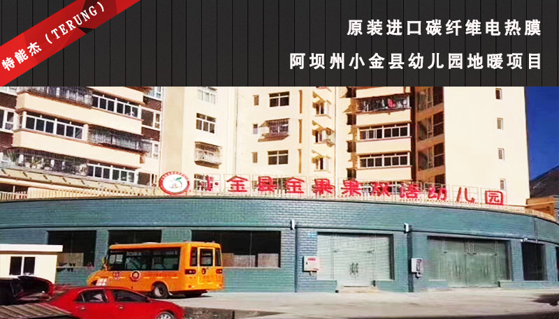小金县地处青藏高原东部边缘,位于四川省西北部,在阿坝藏族羌族自治州南部。东邻汶川县,西毗甘孜州丹巴县,南连雅安市宝兴县,北接马尔康县。属亚热带气候型,气候冬寒夏凉,常年干燥,雨量稀少,气温变化剧烈,四季不甚明显,日差较大,温差也比较大,寒冷期较长,其年均降雨量613.9毫米,因此对采暖系统的需求及要求很高。 特能杰专业采暖此次安装项目是位于该地区金果果幼儿园,其面积为七百多平米,选择配置的产品是特能杰原装进口的碳纤维铜直PTC电热膜,安装工期在4天。