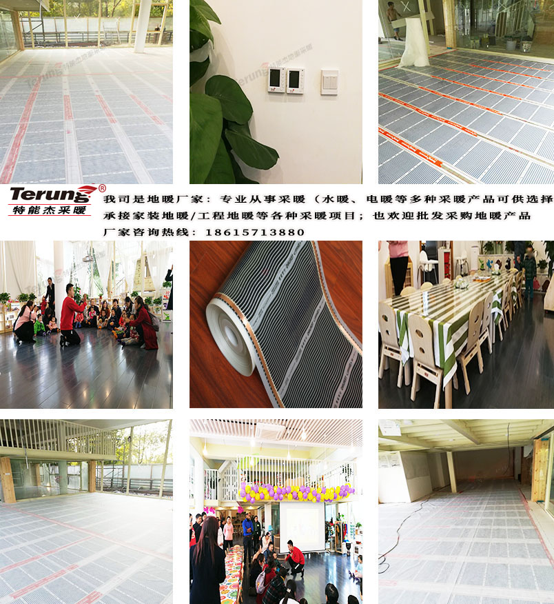 森林艺术儿童馆位于环境舒适的东湖公园,该儿童馆致力于为周边孩子提供舒适优秀的智力扩展学习平台,其在装修及产品的选择上也是基于使用对象如幼儿孩子的考虑,因此采用的都是健康环保的产品,例如此次地暖方案是考虑使用者为幼儿,婴幼童同老人一样,属于体弱人群。但婴幼童活泼好动,又怕冷,尤其是婴幼儿更喜欢在地上爬来爬去,采用的地面低温辐射远红外线地暖系统-特能杰原装进口碳纤维铜直电热膜。既可以使宝宝在冬季得到理想温度的呵护,又因地暖采暖可使地面保持干燥,不产生有害细菌,而对宝宝的健康起到保驾护航的作用。低温辐射远红外线地暖系统,是当今世界最先进的智能供暖方式;在美国、加拿大、挪威、日本、韩国等国家已有20多年的应用历史,应用领域十分广泛。在我国,作为主要地暖系统,不仅适用于北方,更适用于冬季无集中供暖设施的南方大部分地区。