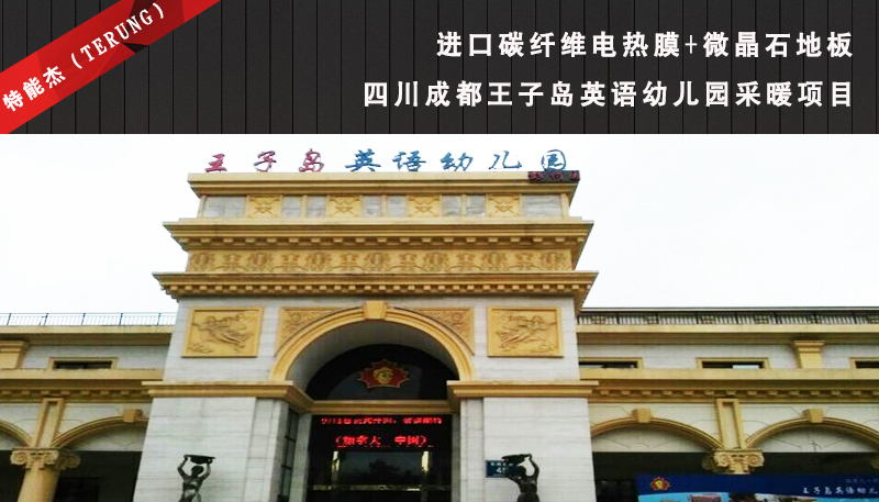特能杰专业采暖此次的采暖项目为成都王子岛国际幼儿园的地暖安装项目,该幼儿园选择的是特能杰二代新型碳纤维发热电暖+专用干铺模块的采暖系统,并且选择使用的是高品质的无甲醛专用的地暖地板-TERUNG微晶石地板;该所幼儿园分上下三层楼,大厅2个外加十多个房间,总面积达到了1400平方米;此次项目配置的产品参数如下:热源为:24K碳纤维发热电缆线,功率17W/米,150W/平方米;分区智能温控器:特能杰液晶智能温控器,环境温度感应器,地暖温度感应器;地暖模块:采用PE-聚乙烯材质干式碳纤维发热线专用的地暖模块;边角保温条:用于墙立面与地面交界处绝热;地暖保温反射一体膜:环保采暖制成;地板:0甲醛,防水防磨损,导热性能好的微晶石地板。